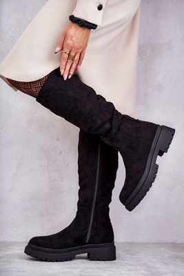 Zamszowe Klasyczne Kozaki Na Suwak Czarne Leyette
