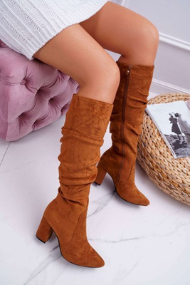 Kozaki Damskie Na Słupku Zamszowe Camel Classy