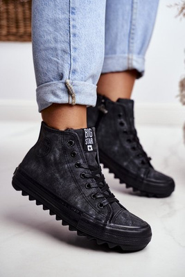 Damskie Skórzane Wysokie Trampki BIG STAR V274542 Czarne