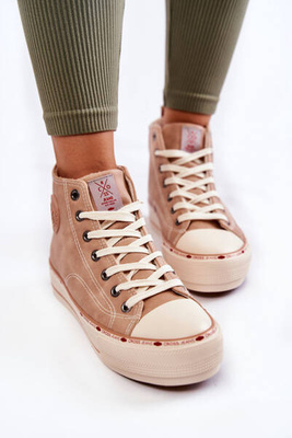 Damskie Wysokie Ocieplane Trampki Cross Jeans KK2R4045C Beżowe