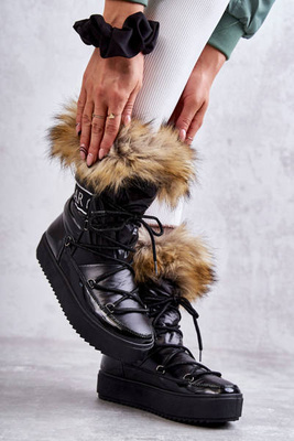 Damskie Śniegowce Sznurowane Czarne Santero