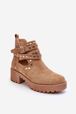 Zamszowe Damskie Botki Z Ozdobnymi Ćwiekami Beżowe Bella