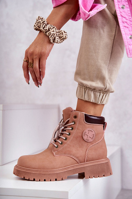 Modne Zamszowe Botki Sznurowane Beżowe Selma