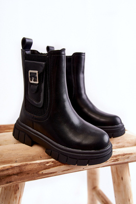 Dziecięce Ocieplane Botki Trapery Czarne Cheddy