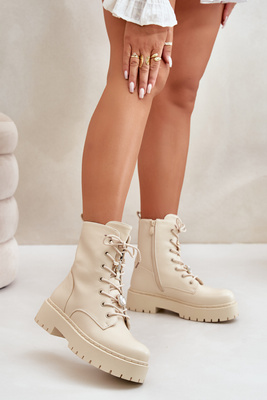 Ocieplane Botki Workery Damskie Z Przypinkami Beżowe Avorira