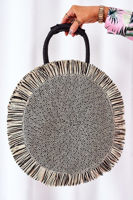 Pleciona Okrągła Torebka Boho BRUNO ROSSI Czarno-Beżowa