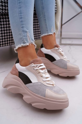 Sportowe Damskie Buty Gruba Podeszwa Beżowe Cardamon