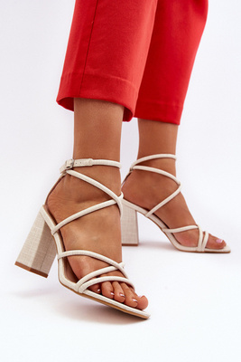 Sandały Damskie Na Słupku Beżowe Opifiana