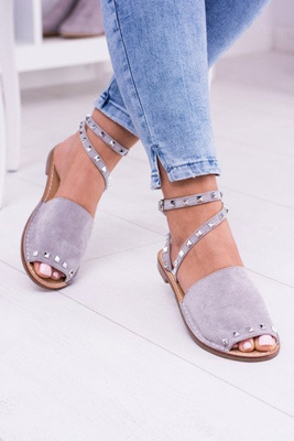 Damskie Klapki Z Kokardkami Pin-up Girl Szare