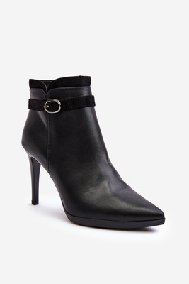 Skórzane Botki Damskie Na Słupku Czarne Lemar Leocera