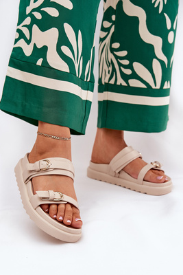Klapki Damskie Z Paskami I Klamrami Beżowe Uliri