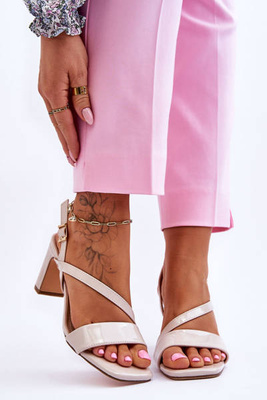 Damskie Lakierowane Sandały Na Słupku Beżowe Carrie