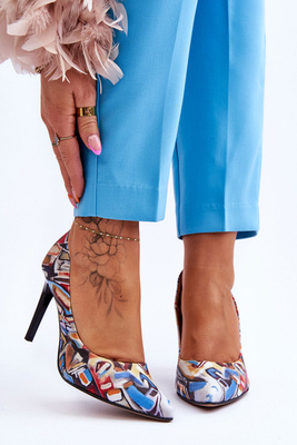 Modne Skórzane Szpilki Lewski Shoes 2659 Zielono-Niebieskie