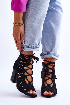 Wygodne Zamszowe Sandały Na Masywnym Słupku Czarne Elishia