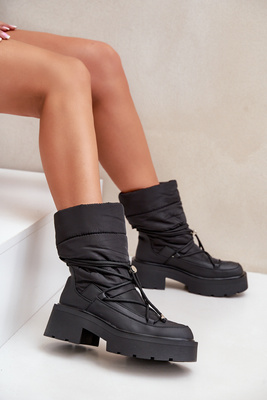 Śniegowce Damskie Na Platformie I Płaskim Obcasie Czarne Seandriel