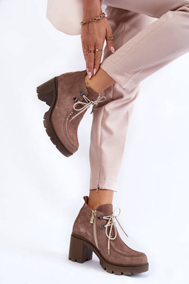 Damskie Zamszowe Botki Wiązane Jasnobrązowe Lemar Marianne
