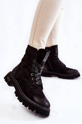 Zamszowe Botki Sznurowane Lewski Shoes 3244/G Czarne