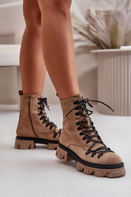 Damskie Zamszowe Botki Wiązane Beżowe Vanita