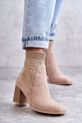 Damskie Zamszowe Botki Ze Skarpetą Beżowe Montes