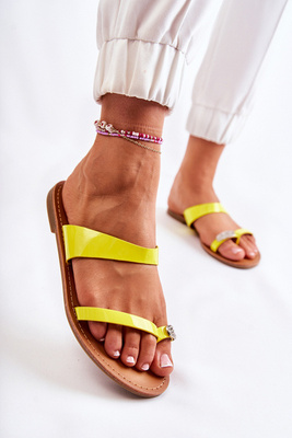 Damskie Lakierowane Klapki Japonki Żółte Jimena