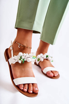 Modne Sandały Z Koralikami Białe Hally