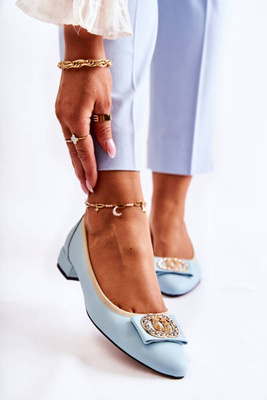 Skórzane Baleriny Z Ozdobą Niebieskie Joliet