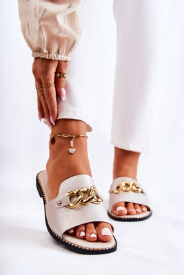 Modne Klapki Z Łańcuchem Na Płaskim Obcasie Złote Finess