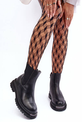 Damskie Skórzane Botki Na Masywnej Platformie Czarne Lemar Savira