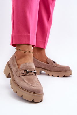Masywne Mokasyny Damskie Zamszowe Beżowe Neloria