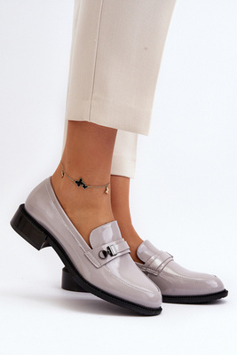 Damskie Lakierowane Mokasyny Szare Nerilaja