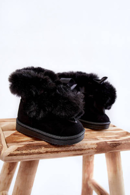 Dziecięce Ocieplane Botki Z Kokardkami Śniegowce Czarne Funky