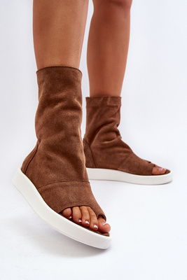 Wsuwane Skarpetkowe Botki Damskie Brązowe Ilanae