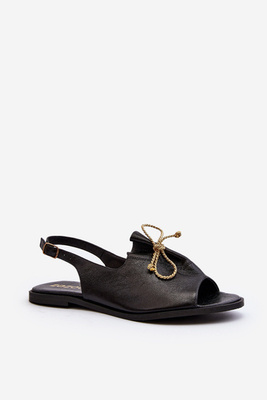 Zazoo 2898 Skórzane Płaskie Sandały Czarne