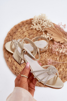 Sandałki Dziewczęce Na Niskim Obcasie Z Cyrkoniami Złote Ollna