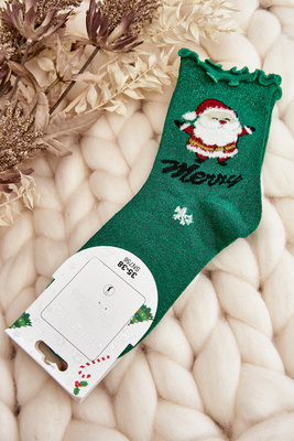 Damskie Błyszczące Świąteczne Skarpety Z Mikołajem Zielone