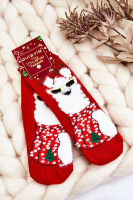 Dziecięce Świąteczne Bawełniane Skarpety Termoaktywne Alpaka Czerwone