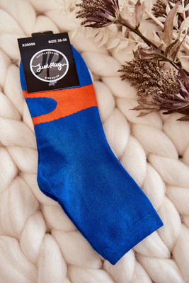 Damskie Bawełniane Skarpetki Pomarańczowy Wzór Niebieskie