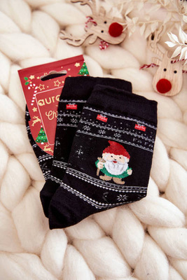 Męskie Świąteczne Bawełniane Skarpetki Z Mikołajem I Reniferem Ciemnoszare