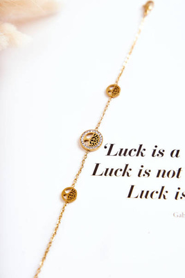 Klasyczna Bransoletka Na Cienkim Łańcuszku Z Ozdobami Złota