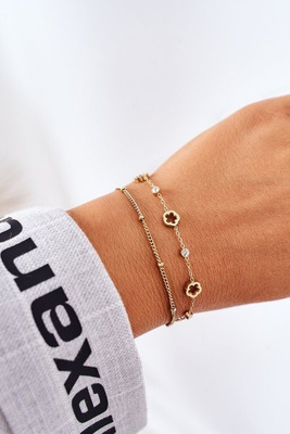 Bransoletka Podwójna Łańcuszek z Zawieszkami Złota Charming
