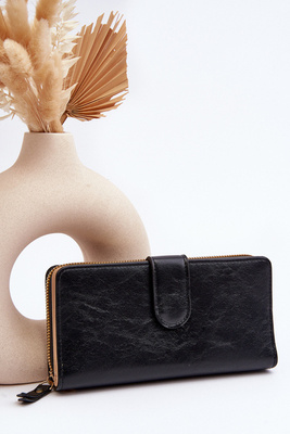 Damski Duży Portfel Z Ozdobą Czarny Fabio