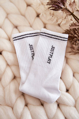 Damskie Sportowe Skarpety Pionowy Napis Just Play Białe