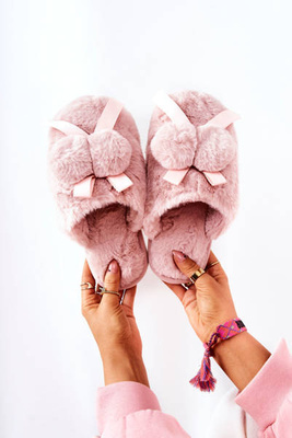 Papcie Futrzane Z Pomponami Różowe Pamppy