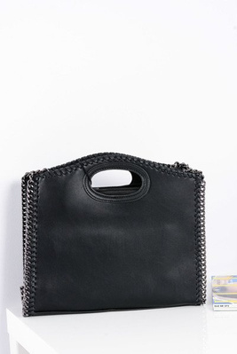 Damska Czarna Duża Torba Kuferek Łańcuch
