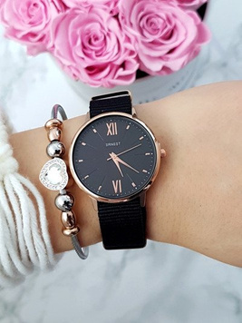 Damski Zegarek Michael John Evento Czarny Zamszowy Pasek Brokat