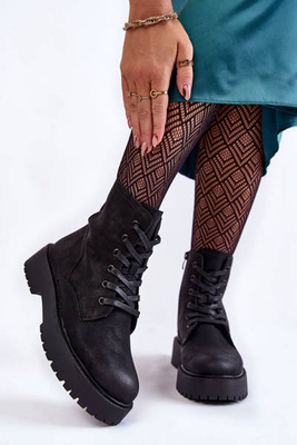 Damskie Zamszowe Botki Na Masywnej Platformie Czarne Lemar Savira