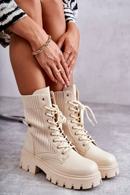 Damskie Workery Botki Ze Skarpetą Beżowe Abigail