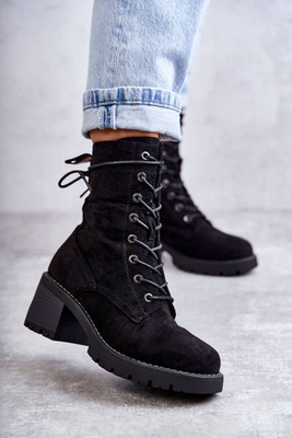 Damskie Ocieplane Botki Trapery Na Obcasie Czarne Julieta