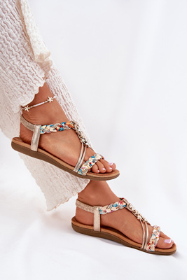 Sandały Damskie Płaskie Z Plecionymi Paskami I Przypinkami Artiker 54C1323 Złote