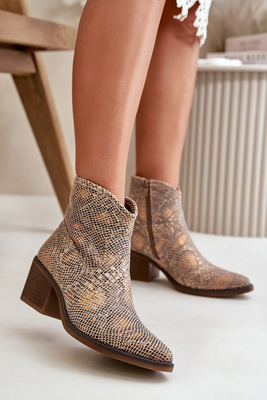 Botki Kowbojki Damskie Zapinane Na Zamek Zwierzęcy Wzór Złote Merisine